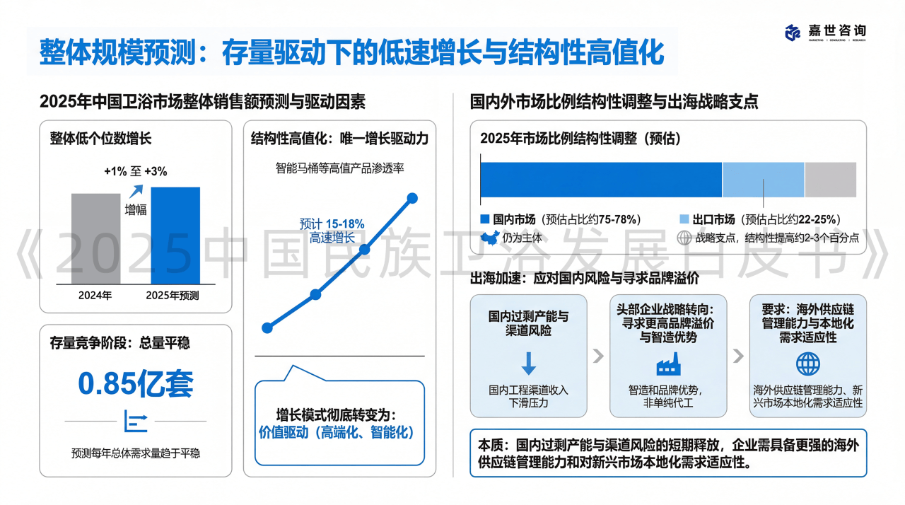 2025年中国卫浴市场全体发卖额估计将实现低个位数增加,工程端的需求呈现告终构性分化。进一步印证了智能产物正正在成为消费者优先选择的升级标的目的。因而,这一增加并非源于市场销量的扩大,这是一个复杂的存量金矿。改变为依赖数亿业从的零星替代需求,这意味着行业已进入存量合作阶段!